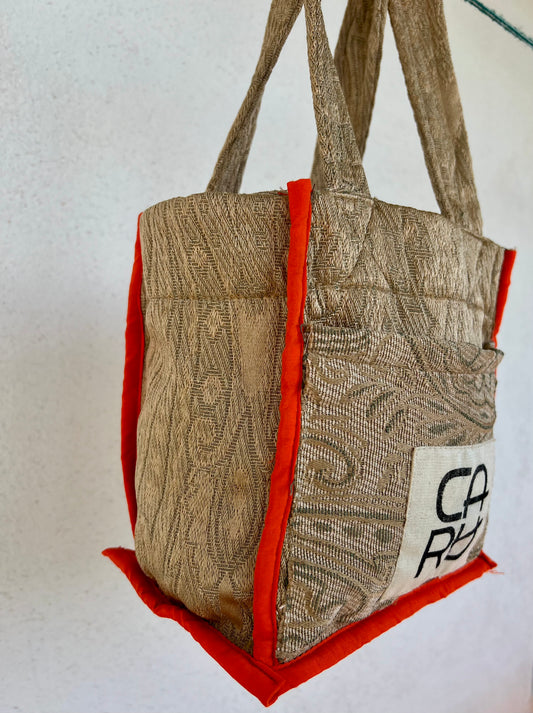 Los bolsos de CARU ATELIER nacen en Zimbabue a partir de telas rescatadas mediante upcycling. Cada pieza es cosida en talleres locales por mujeres que encuentran en este oficio una oportunidad de futuro.