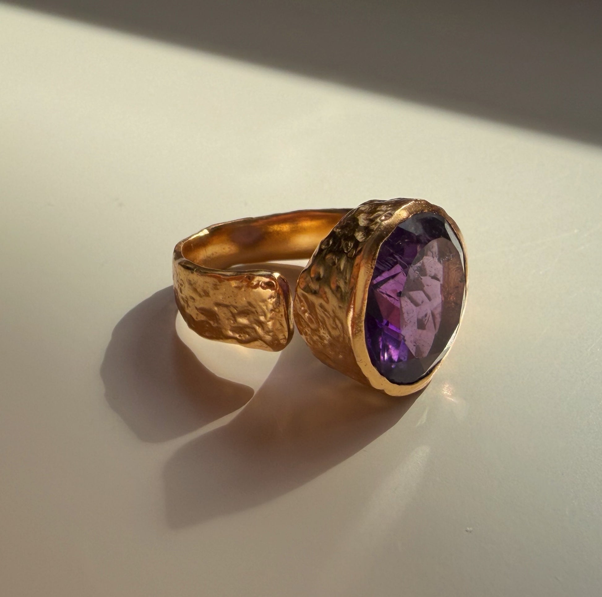 La amatista, piedra de la claridad y la intuición, invita a detener el ruido y conectar con lo esencial. Su tono violeta profundo refleja una serenidad poderosa, esa que no necesita mostrarse para brillar.
