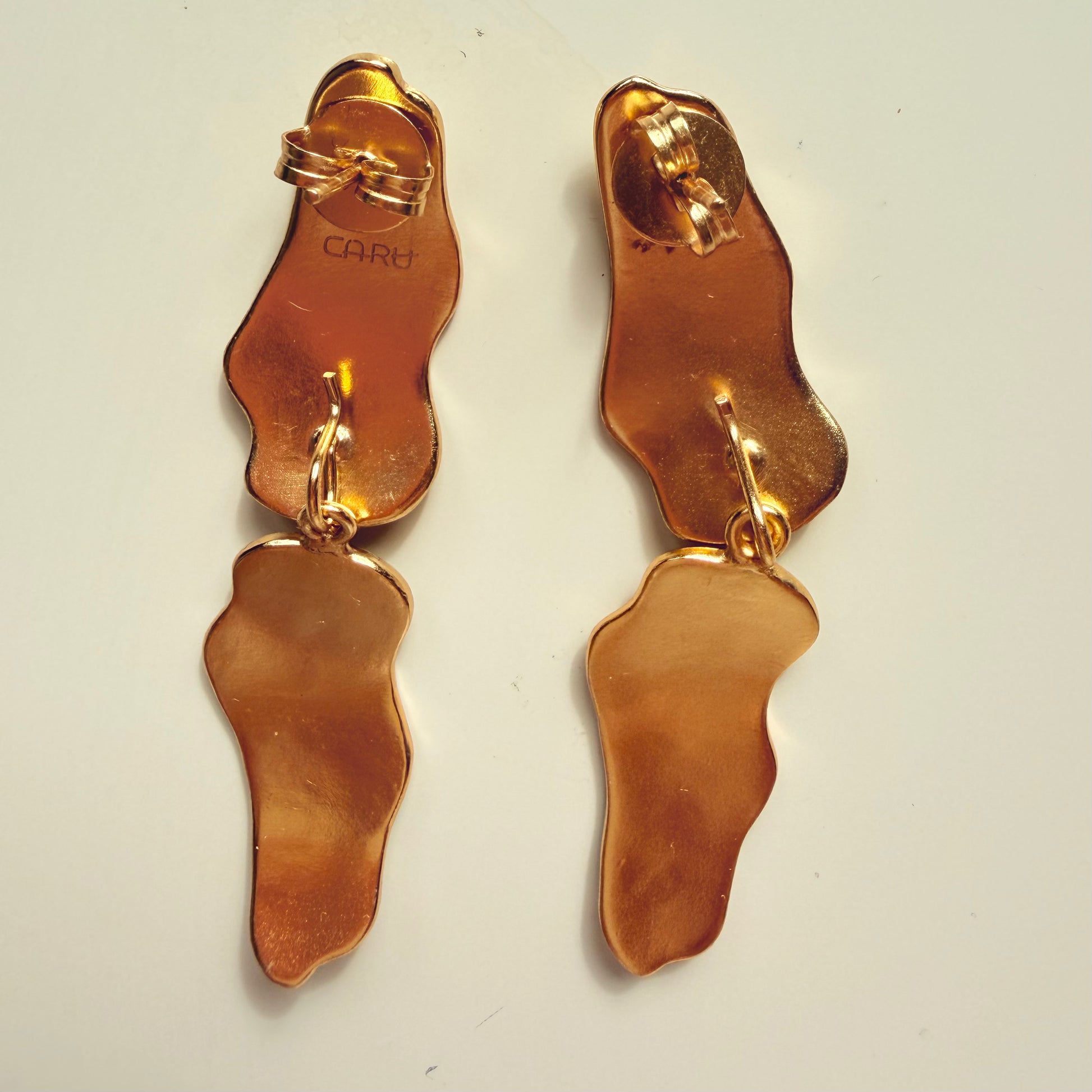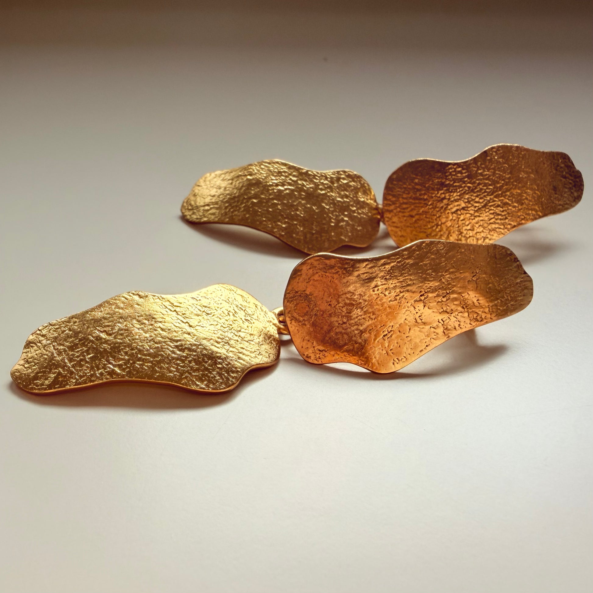 Pendientes elaborados artesanalmente en latón bañado en oro de 24 kt.