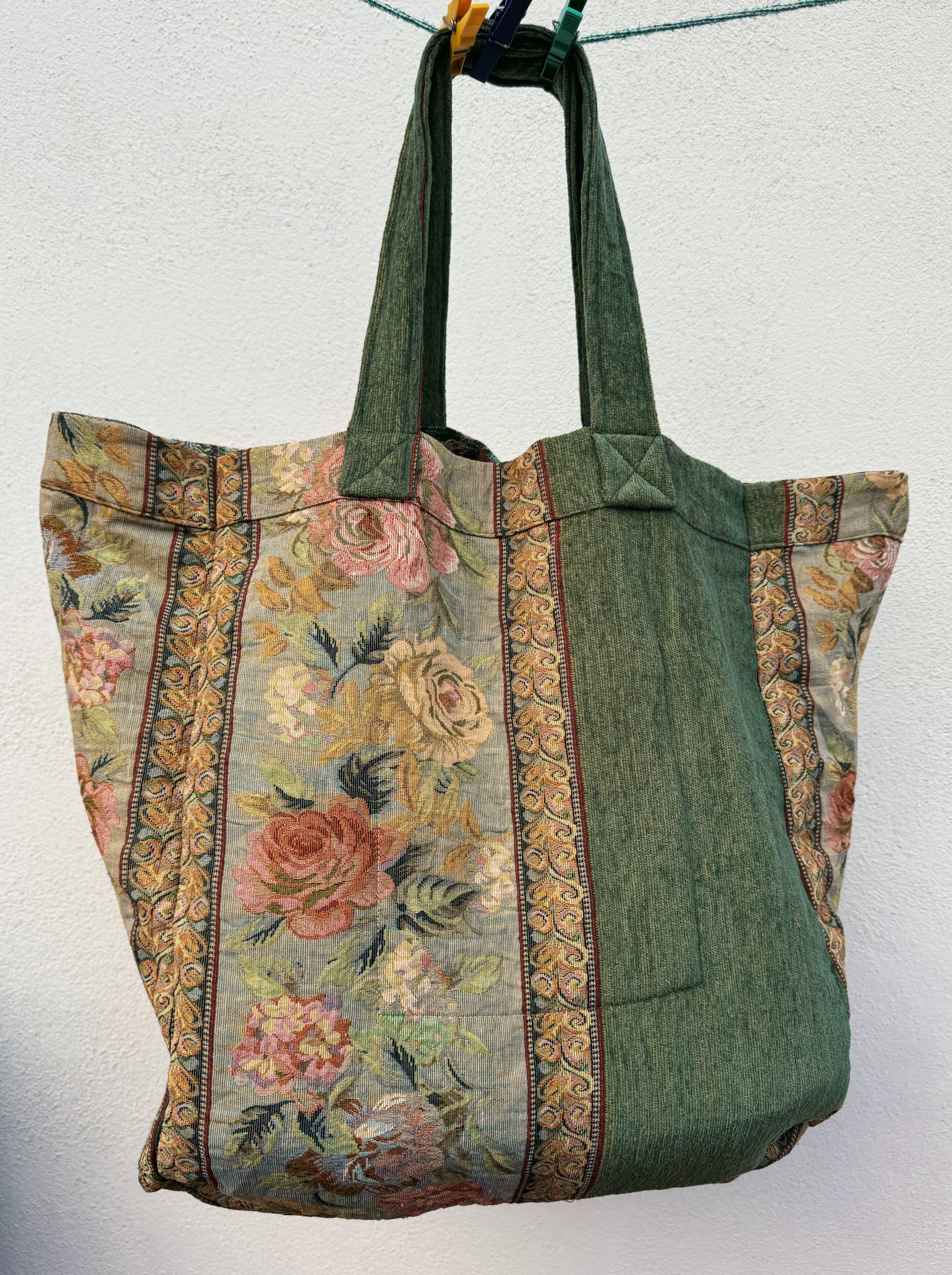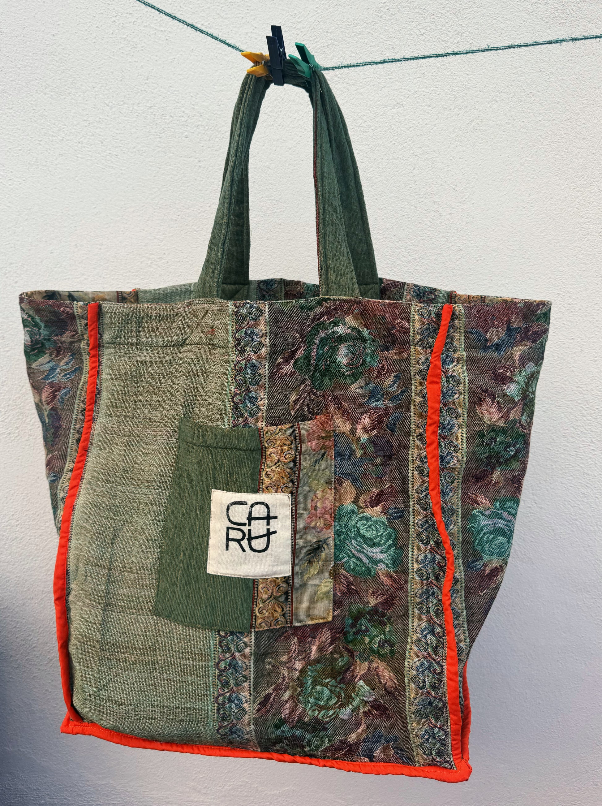 Reversible, versátil y ligero. Un bolso que no solo te acompaña, sino que también cuenta una historia: la de un tejido salvado y la de las manos que lo hicieron posible.