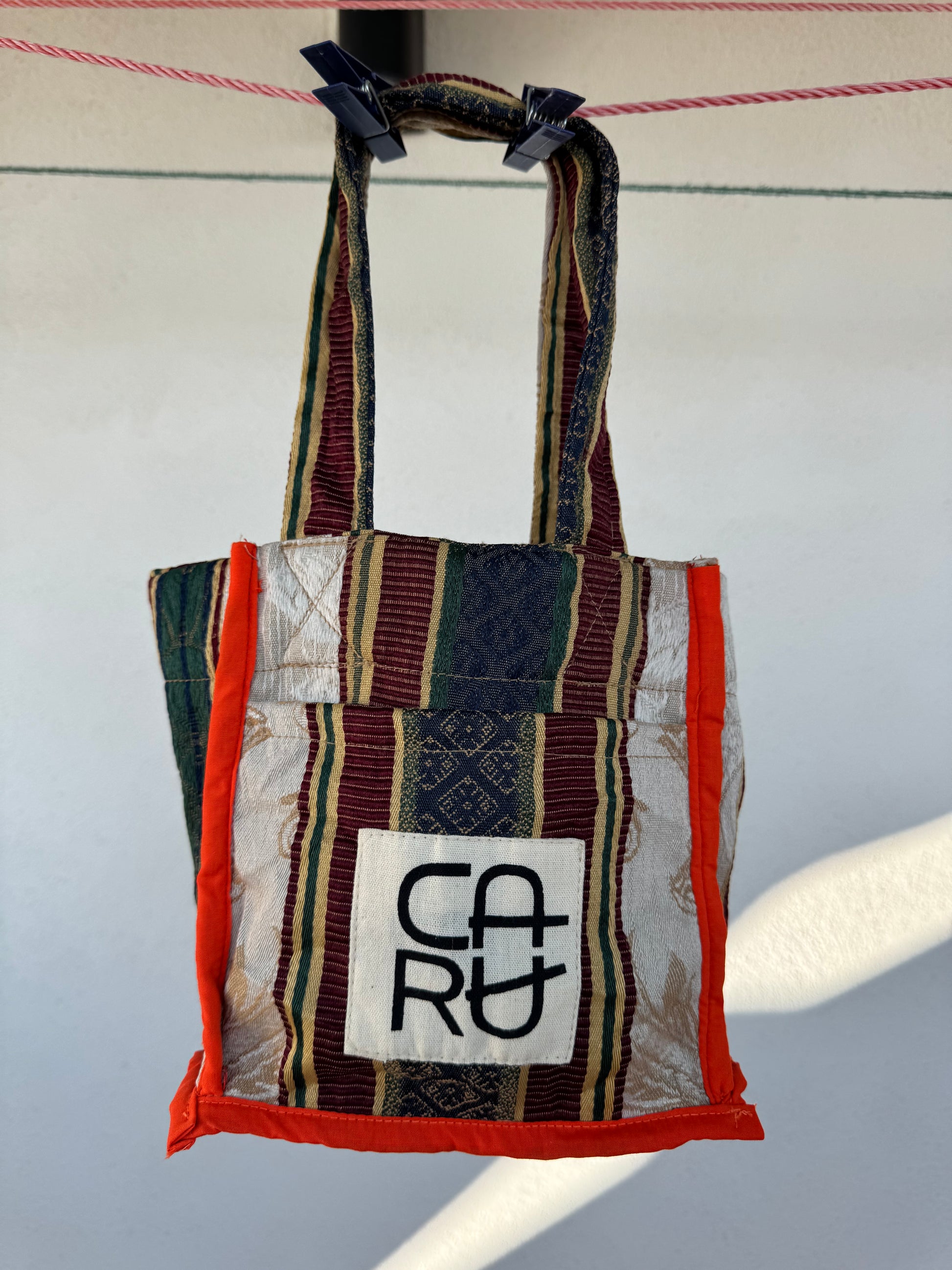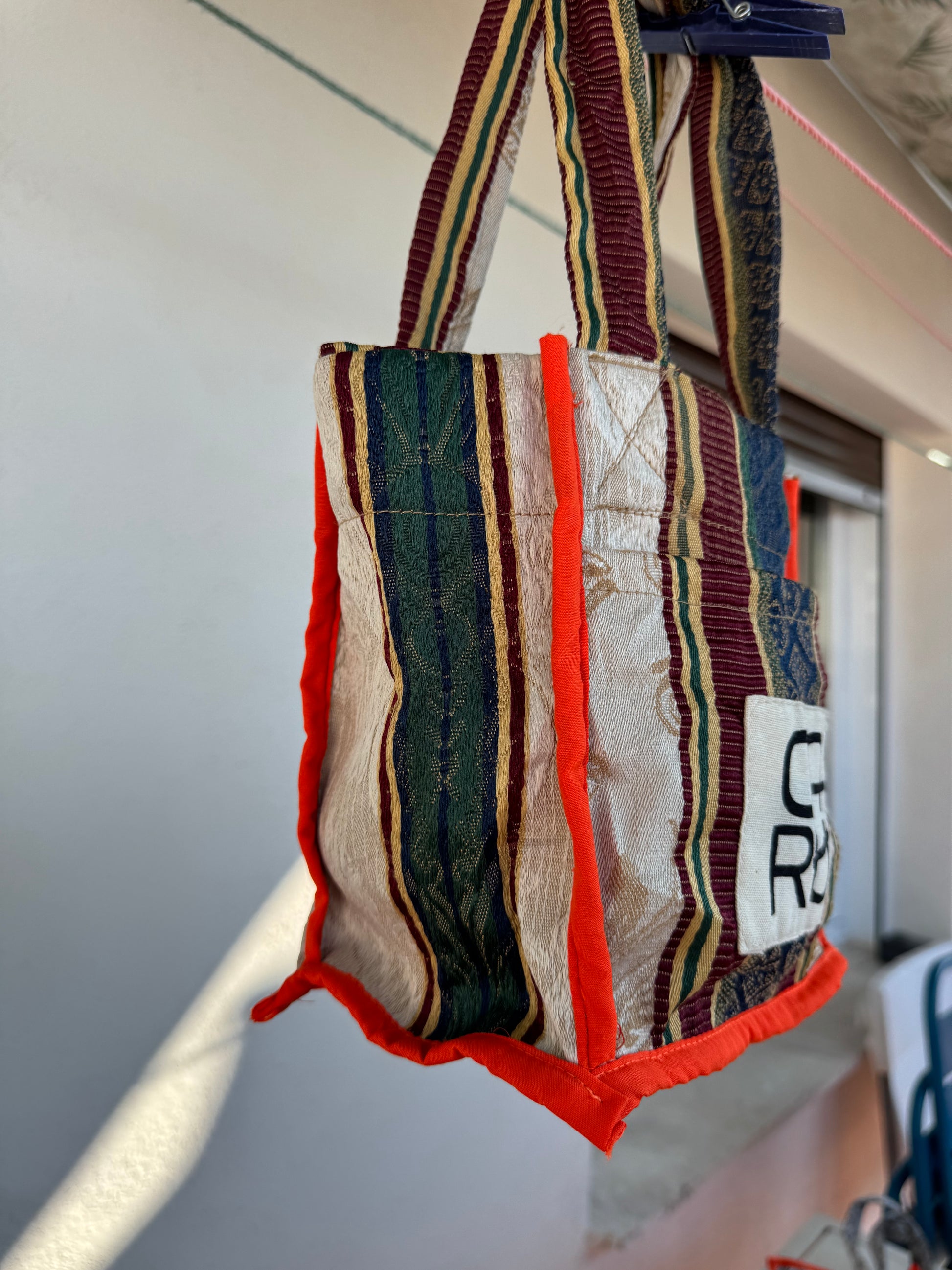 Reversible, versátil y ligero. Un bolso que no solo te acompaña, sino que también cuenta una historia: la de un tejido salvado y la de las manos que lo hicieron posible.